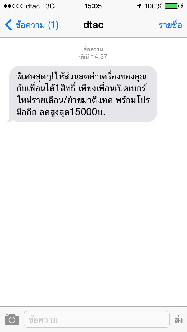 รบกวนถามว่าเป็น sms ข้อความสั้นที่ Dtac ส่งมาหรือไม่