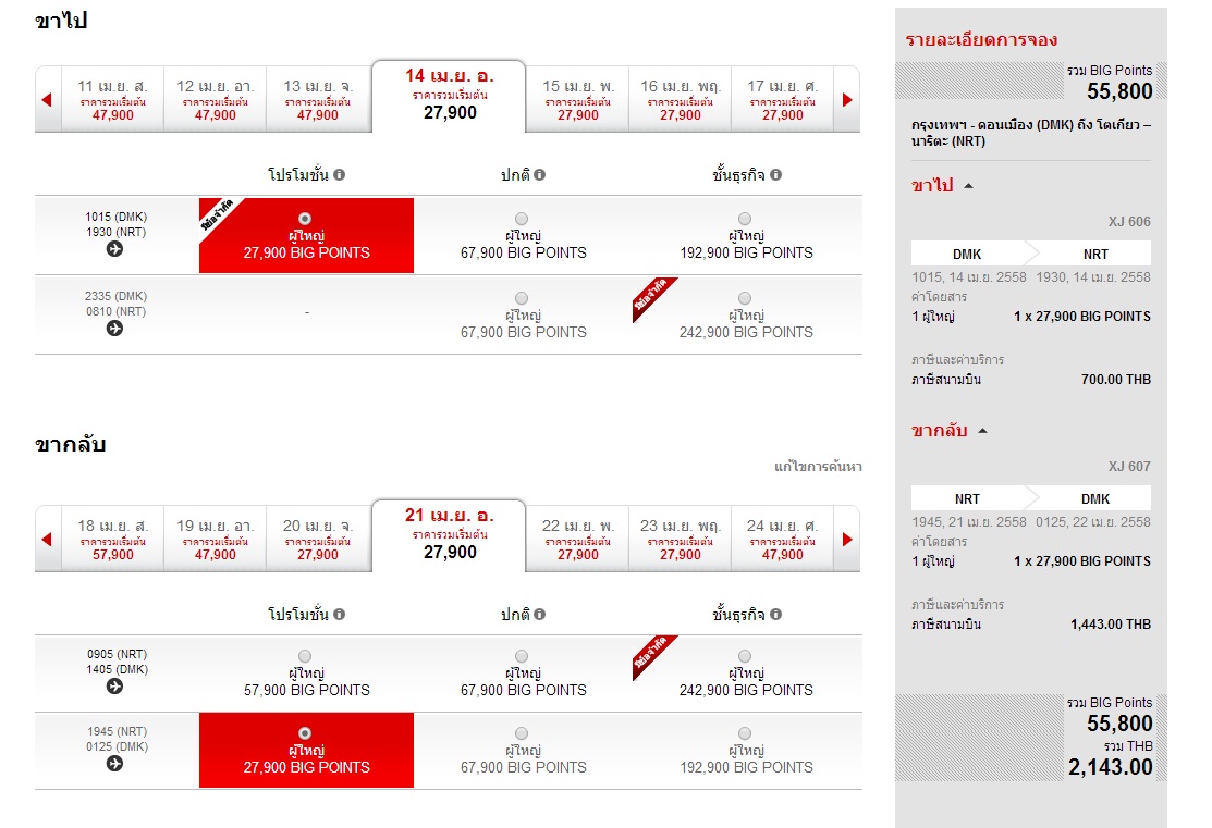 ชี้เป้า...ใครมีคะแนน Big ไปแลกตั๋ว TAAX กรุงเทพฯ-โตเกียว ไปกลับ ราคา ประมาณ 7600.- ช่วงกลางเมษา58