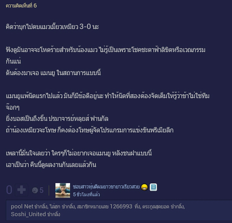 พอดีเห็นวันนี้ยังไม่มีใครตั้งทู้แนวนี้อ่ะนะ เลยรู้สึกว่า ก่อนเกมส์วันนี้มันดูเงียบๆ พิกล ทู้เจิมก็ไม่มี ทู้ข่มห็ไม่มี มีแต่ทู้อยากจะแพ้เพื่อไล่ ผจก.ทีม ทั้งคู่ เอาเป็นว่าเปลี่ยนจากทู้อวยทู้ด่าซิโก