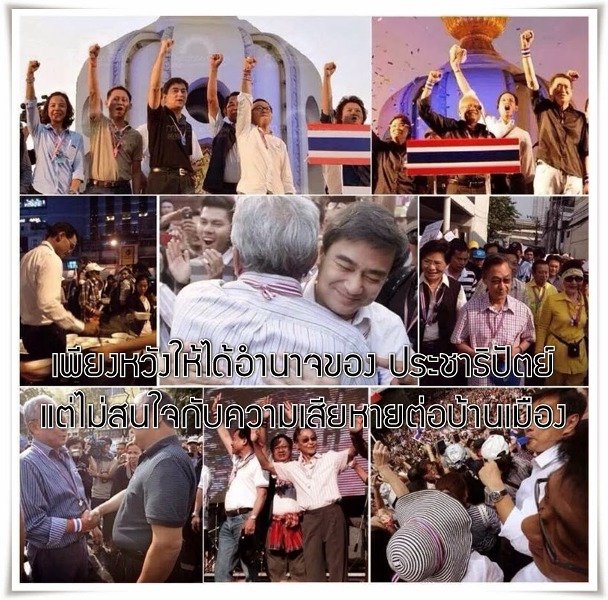 ล้วนแต่เป็นความต้องการที่จะเข้ามาสู่อำนาจของ พรรคประชาธิปัตย์ โดยไม่คำนึงถึงความเสียหายที่เกิดขึ้นกับบ้านเมือง