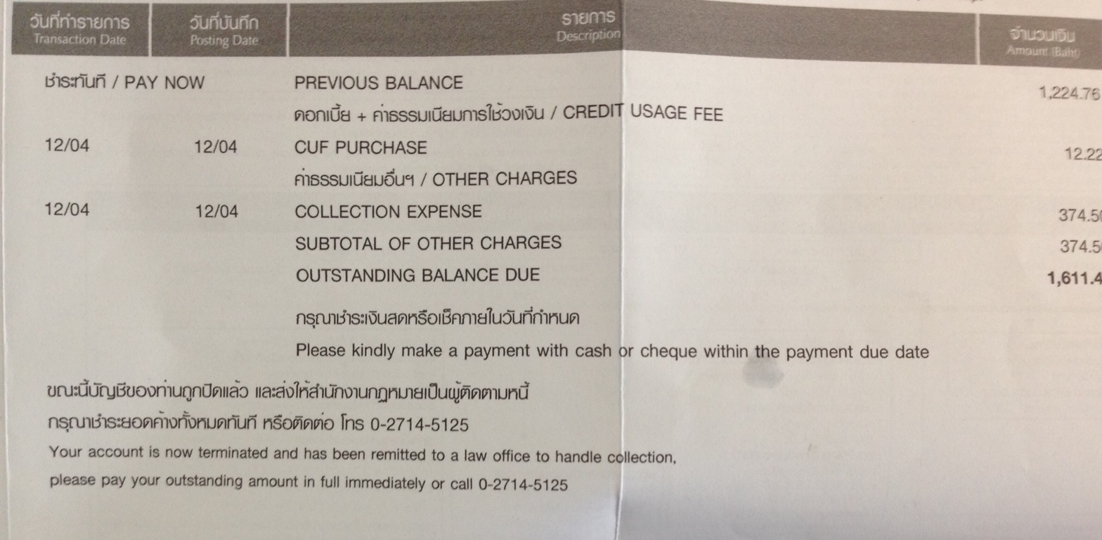 รีบเคลียร์ แต่สายเกินกาล บัตรทั้งสามใบถูกยกเลิกไปเสียแล้วกับเงินค้างชำระพันกว่าบาท