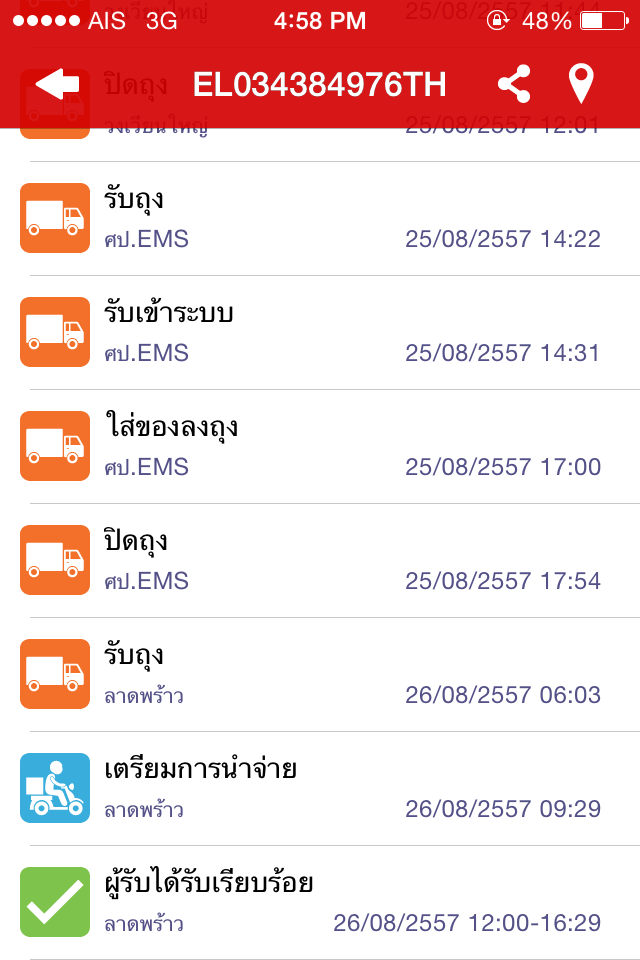 เราเชคสถานะจากในแอพของไปรษณีย์ตลอด