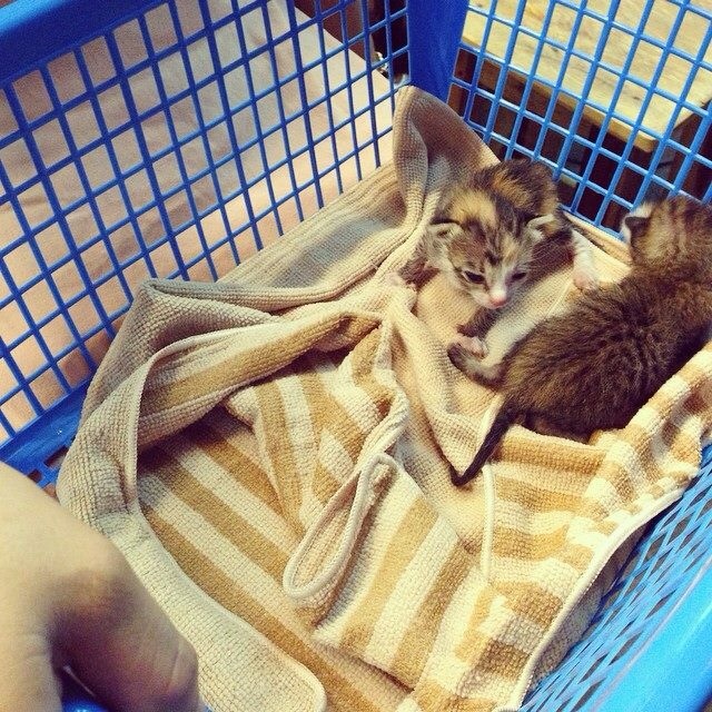 เมื่อวันอาทิตย์ที่ 24 สิงหาคม ที่ผ่านมา มีคนนำลูกแมว อายุประมาณ 3 วัน มาทิ้งไว้ที่บนท้ายรถกระบะหน้าร้านของผมจำนวน 2 ตัวครับ มีขวดน้ำ ขวดนม พร้อมกับนมกล่อง ทิ้งไว้ให้ในตะกร้า ลูกแมว 2 ตัว ร้องเสียงดังน่าสงสารมากเลยครับ ผมไม่คิดเลยว่าจะมีคนใจบาปขนาดนี้ ลูกแมวตัวเล็กมากครับ ยังไม่หย่านมแน่ๆ ผมไม่รู้จะทำอย่างไร ผมเองก็เปิดร้านอาหาร การนำสัตว์มาเลี้ยงไว้ ก็คงไม่เหมาะสม เพื่อนผมจึงนำรูป ไปโพสไว้ใน facebook เผื่อจะมีเพื่อนๆ คนไหนสนใจนำกลับไป แต่ก็ไม่มีใครรับเลี้ยงเลยครับ ก็นำลูกแมวทั้ง 2 ตัว ไปไว้ หลังร้าน ให้นมให้น้ำตลอด แต่ด้วยความที่เป็นร้านอาหาร ลูกค้าเค้ามาทานอาหาร ก็ได้ยินเสียงลูกแมวร้องตลอด แต่ก็ได้แจ้งกับทางลูกค้านะครับว่ามีคนนำลูกแมวมาปล่อยไว้