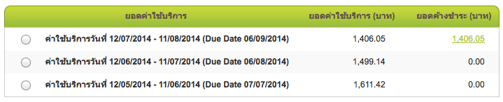 ค่าใช้บริการวันที่ 12/06/2014 - 11/07/2014 (Due Date 06/08/2014) โดนไป 450 บาท