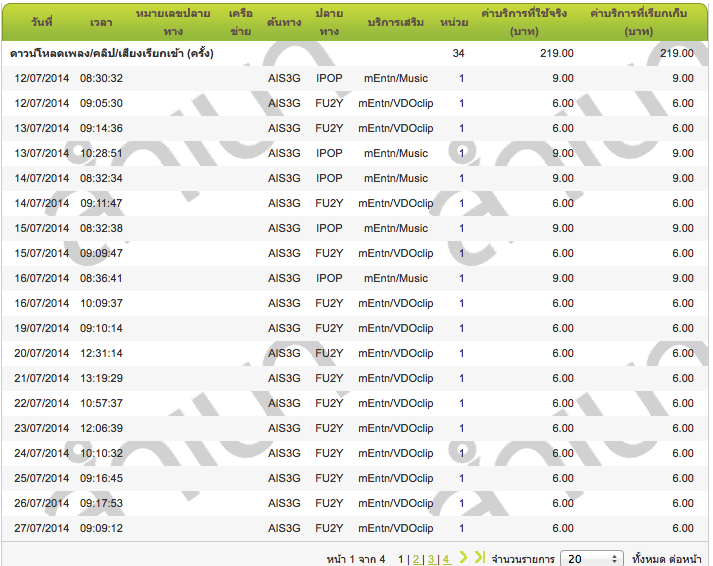 ค่าใช้บริการวันที่ 12/07/2014 - 11/08/2014 (Due Date 06/09/2014) โดนไป 219 บาท