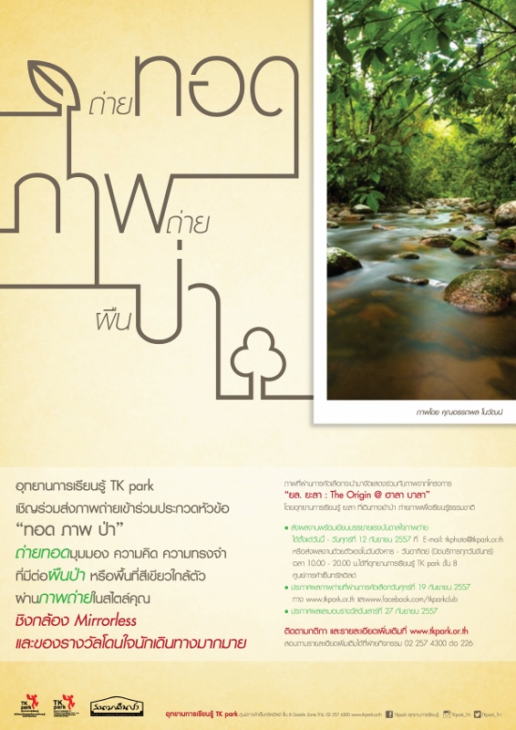 ประกาศผลภาพถ่ายที่ผ่านการคัดเลือกวันศุกร์ที่ 19 กันยายน 2557 ทาง www.tkpark.or.th และwww.facebook.com/tkparkclub