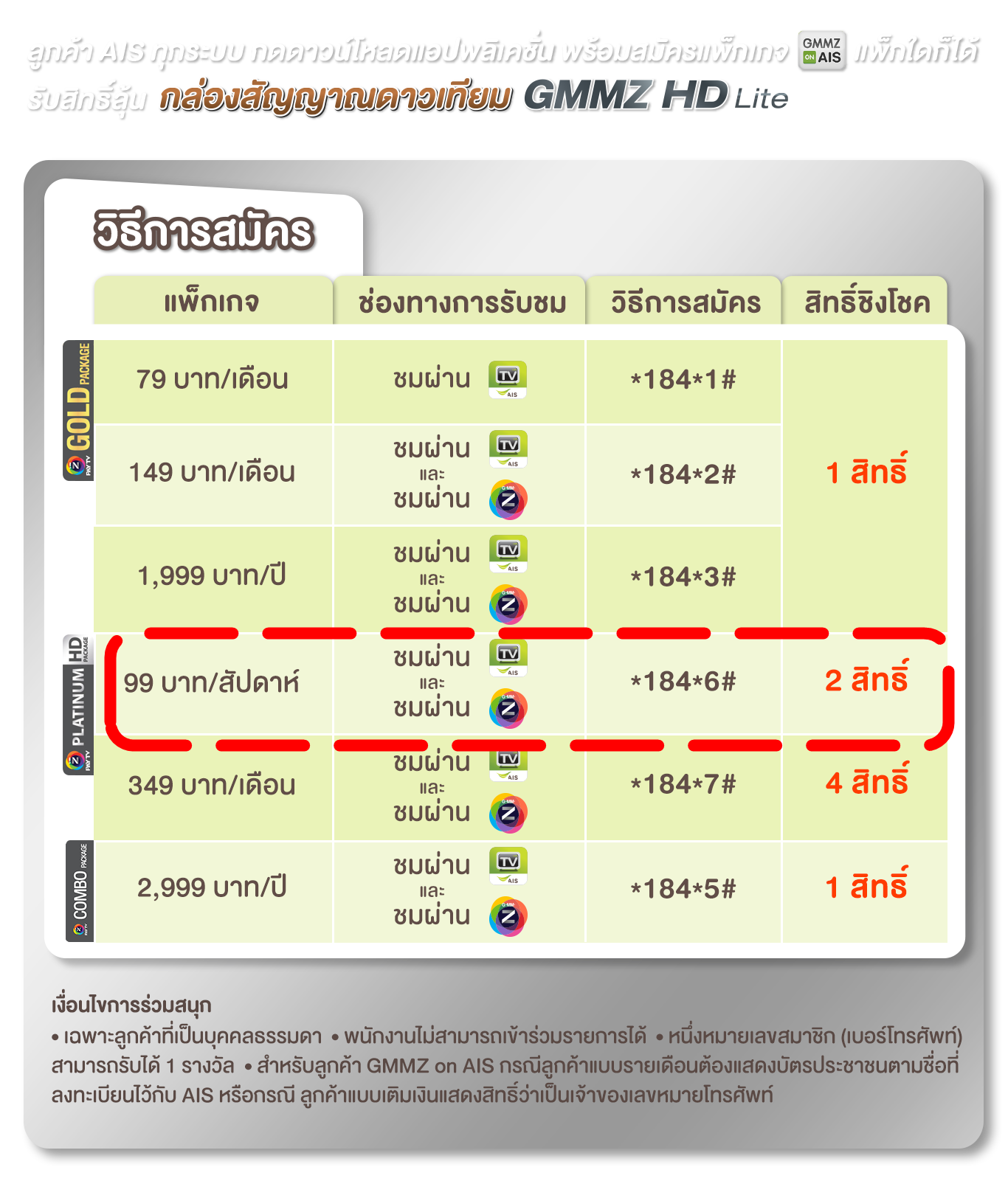 สรุป AIS Platinum HD แบบรายเดือน ถูกสุดครับ ถูกกว่า GMMZ Platinum HD แบบรายปี เฉลี่ยวันละ 1.4 บาท หรือปีละ 517.8 บาท
