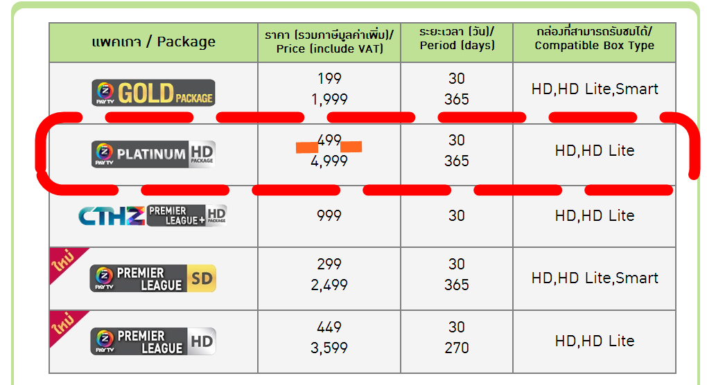 GMMZ Platinum HD (แบบรายปี) ปีละ 4,999 (รวม vat แล้ว) หาร 365 วัน เฉลี่ยวันละ 13.7 บาท