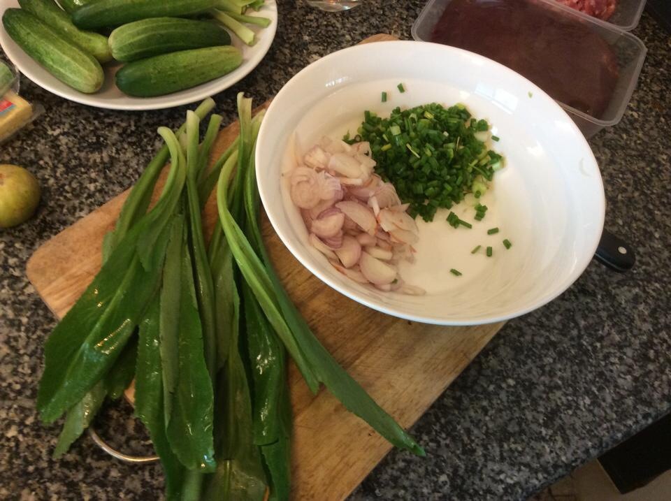 ล้างผักแลัวหั่นเลยค๊าาา ในที่นี้ใส่หอมแดง ผักชีฝรั่ง และต้นหอมค่ะ ชอบมากใส่มาก ชอบน้อยใส่น้อย ไม่ชอบ ไม่ต้องใส่ค่ะ