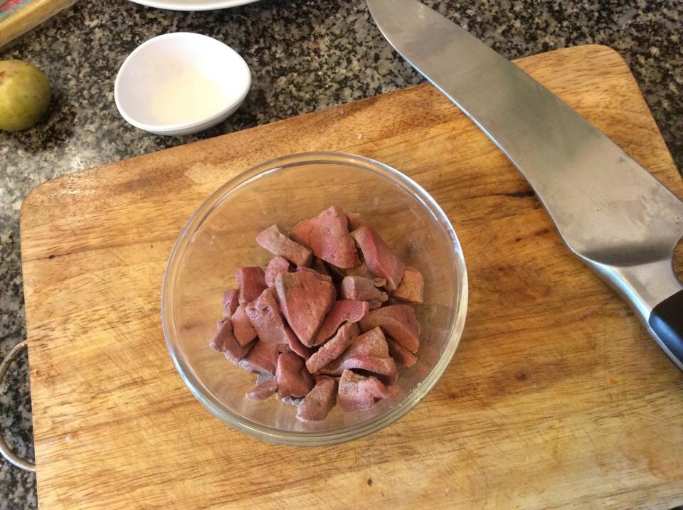 หากไม่ชอบกลิ่นตับ แนะนำให้ลวก 1 ที แล้ว ล้างน้ำอีกครั้ง ง่ายกว่านั้นคือ ยัดเข้าไมโครเวฟ 2 นาที รู้เรื่องงงงงงค่ะ !!!