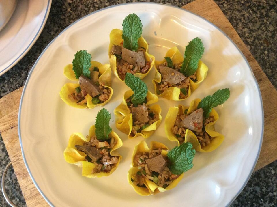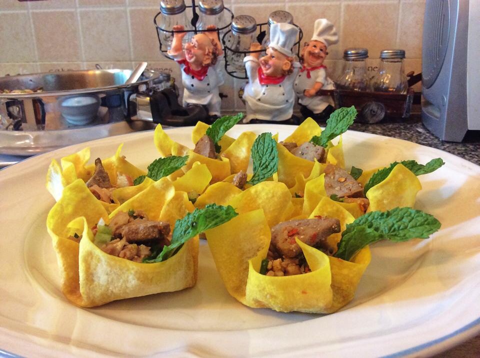 Plotty's Kitchen :: Canapé ลาบหมูเกี๊ยวกรอบ (ไมโครเวฟ)