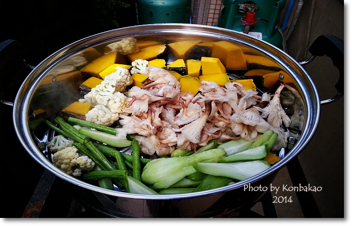 จัดการเผาพริก หอม กระเทียม เตรียมทำน้ำพริกหนุ่มก่อนเพราะจะช้ากว่าอย่างอื่น ตำน้ำพริกเสร็จจัดการนึ่งผักก่อน