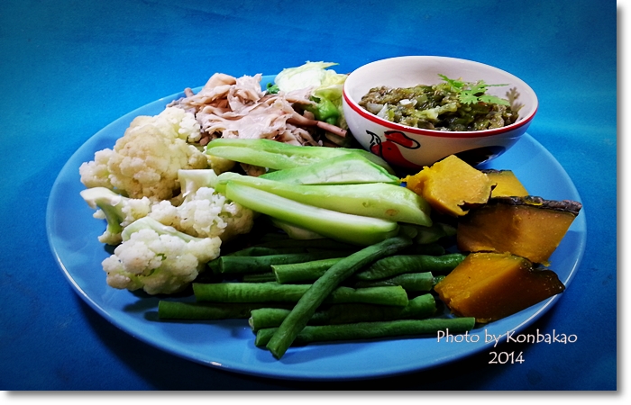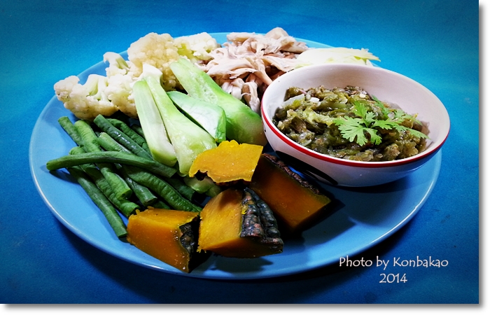 ผักนึ่ง น้ำพริกหนุ่ม วันนี้ตำเพื่อกินกับปลานึ่งเลยจัดการบีบมะนาวใส่ลงไปด้วย แซ่บเปรี้ยวมากมายเลย