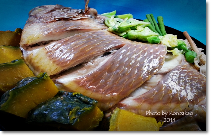 นึ่งผักไม่นาน เอาผักออก นึ่งปลาต่อ (ภาพวันนี้กระโดดมาก ๆ คงเป็นเพราะทำคนเดียวและค่อนข้างเย็นแล้ว)