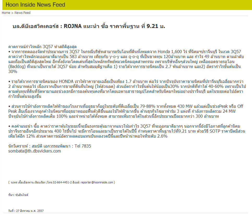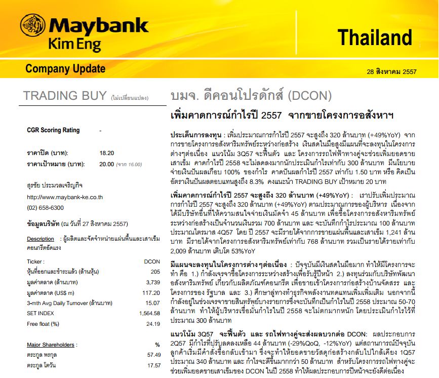 บทวิเคราะห์หุ้น : DCON , LANNA , ROJNA , CKP , HANA , VNG