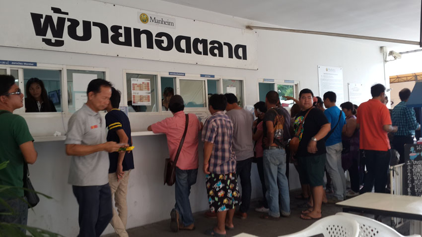 เข้ามาถึง ไปลงทะเบียนก่อนเลย สายๆ คนเยอะมากครับ ลงทะเบียนก็แค่ใช้บัตรประชาชน พร้อมเงิน 2 หมื่นบาท เป็นค่ามัดจำป้าย เงินส่วนนี้คืนให้ตอนเลิกประมูลครับถ้าประมูลไม่ได้