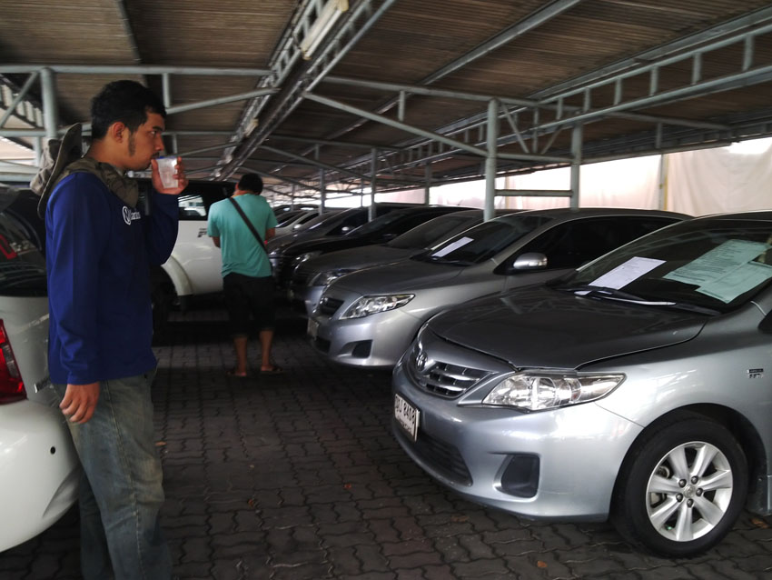 รถที่ จะประมูลเค้าเปิดให้ดูกันก่อนหน้านี้แล้วครับ คนจะประมูล เค้าจะมาเดินดูสภาพกันก่อน ที่ลานจอดเนี่ยแหละครับ