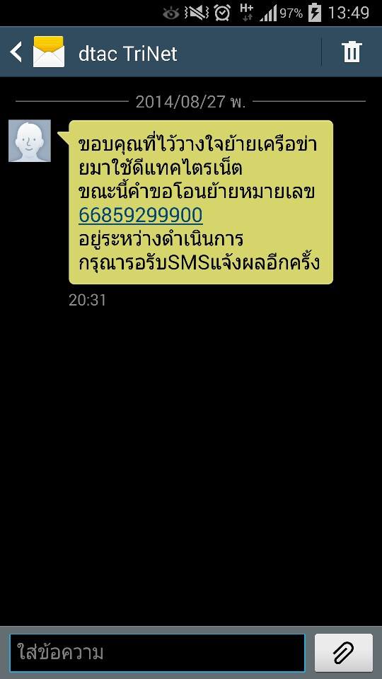 สอบถามสถานะการย้ายค่ายครับ จาก Ais มา Dtac