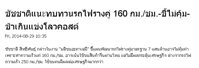 ชัชชาติแนะทบทวนรถไฟรางคู่ 160 กม./ชม.-ชี้ไม่คุ้ม-ช้าเกินแข่งโลวคอสต์