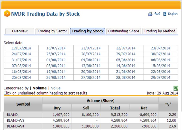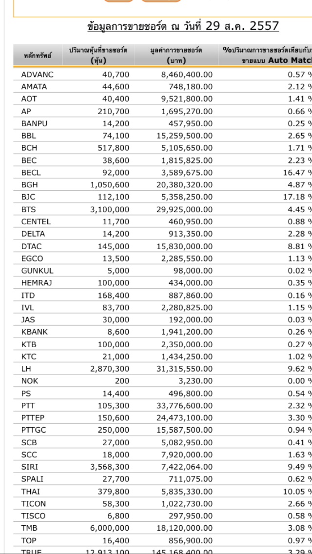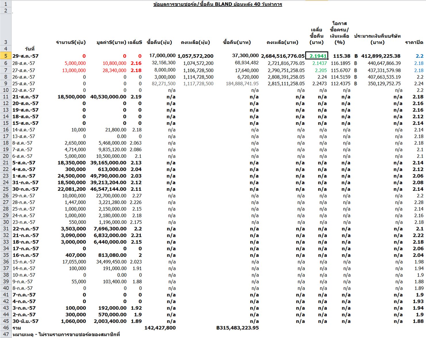 BLAND สรุปรวมรายการ ชอร์ต /ซื้อคืน ประจำวัน-ย้อนหลัง