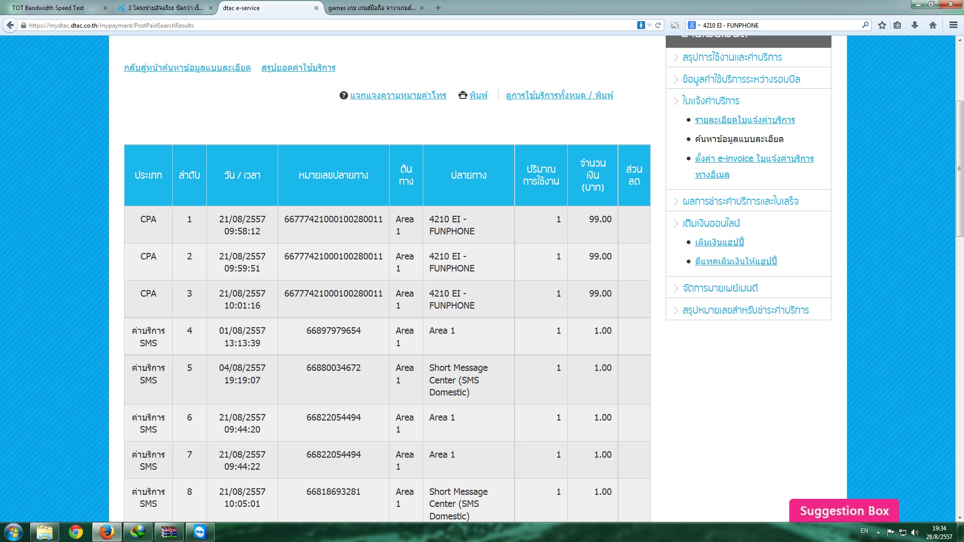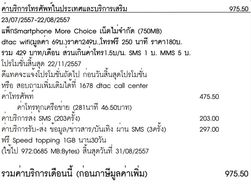 "ค่าบริการรับ - ส่ง ข้อมูล/ข่าวสาร/บันเทิง ผ่าน SMS (3 ครั้ง) 297.00"