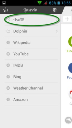 บราวเซอร์ Dolphin ดูประวัติเข้าเว็ปยังไงหรอครับ