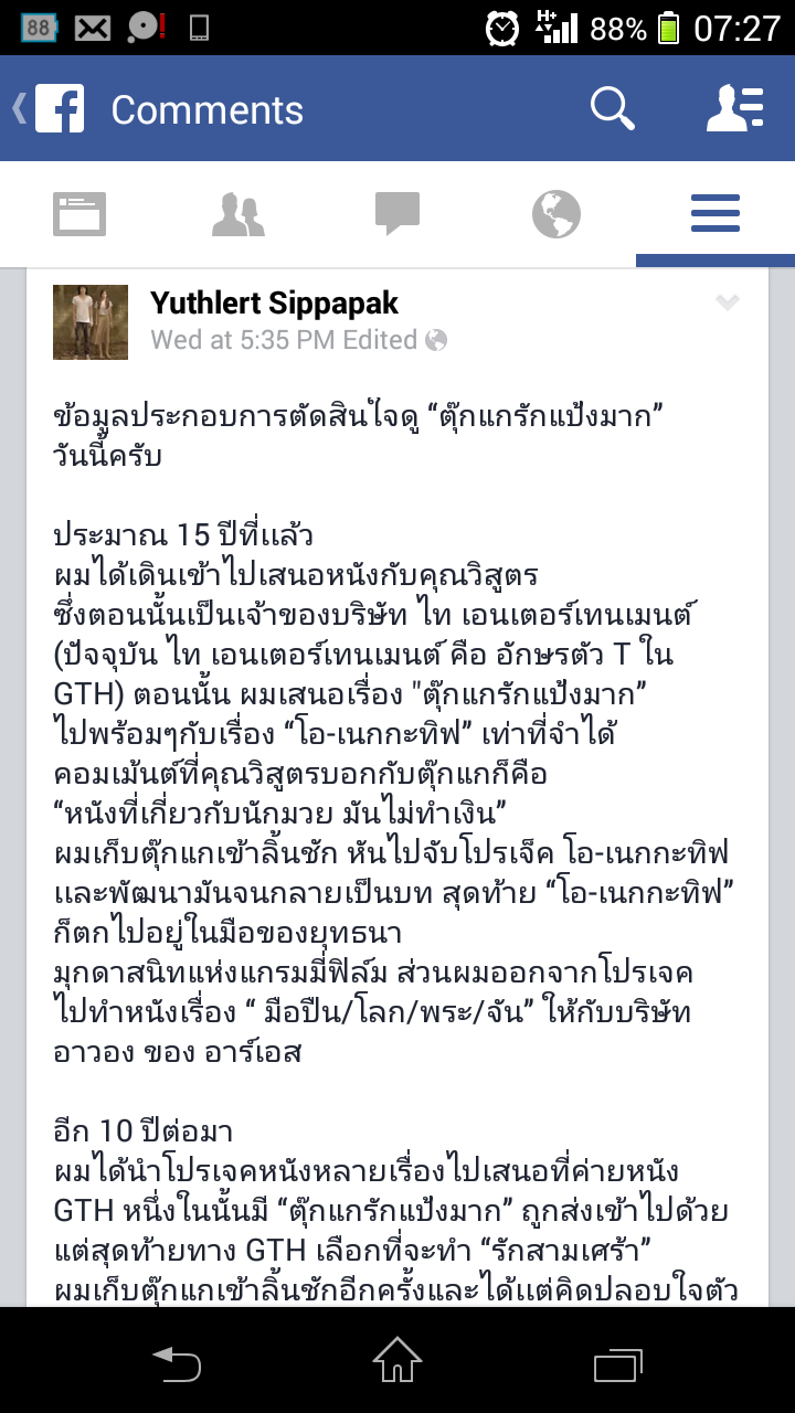 กำลังดูช่อง ONE ที่คุณต้อม มานั่งให้สัมภาษณ์กะป๊าเต็ด เลยได้บางอ้อว่าทำไมเราไปดูตุ๊กแกรักแป้งมากแล้วมีความสุข อิ่มเอมใจ... ส่วนหนึ่งเพราะคำหยาบมันแทบไม่มี ยอมรับว่าตัวเองเป็นคนมีอายุที่ไปดูหนังตลก