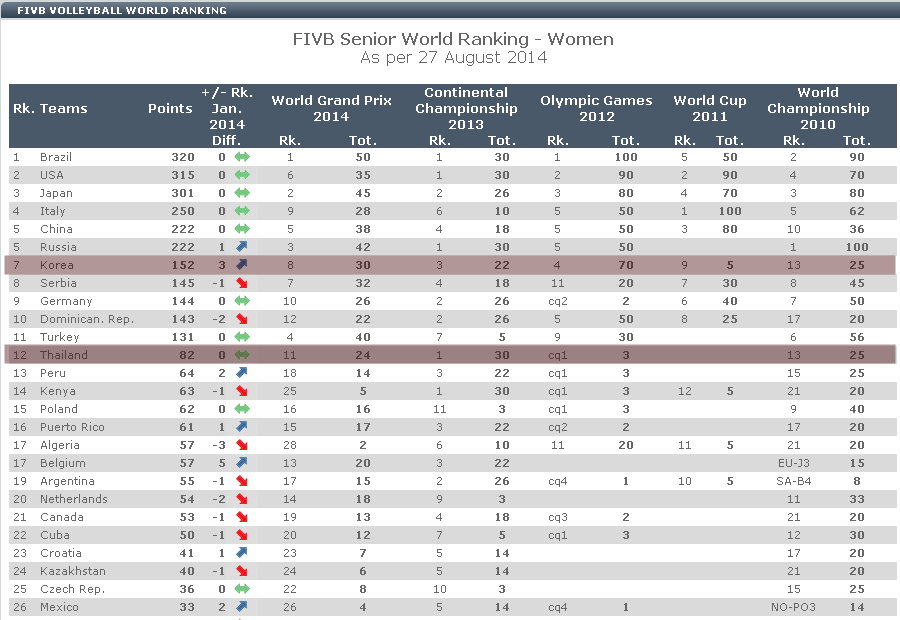 Ranking ณ ปัจจุบัน จากเว็บไซด์ FIVB