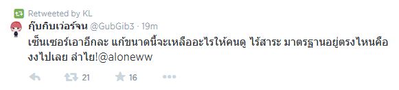 ปล. หนักกว่าคือยิ่งอ่านยิ่งสงสารทีมงาน โดยเฉพาะฝั่งตัดต่อ ประเด็นคือต่อ 1 EP เขาต้องตัดกันกี่รอบครับเนี่ยกว่าจะฉายได้ครบทั้ง 2 เวอร์ชั่น แล้วไหนจะคนข้างนอกที่ไม่ได้ติดตามข่าวอีก เกิดตัดต่ออะไรไม่ลื่น ผิดพลาด ก็โทษทีมงานและฝั่งตัดต่อทั้งนั้น ไมีค่อยมีใครสนใจจะโทษกองเซ็นเซอร์จริงๆ จังๆ เห็นแบบนี้แล้วมันน่าสงสารคนทำงานจริงๆ เจอพวกชักใบให้เรือเสีย วันๆ โลกหมุนอยู่แต่กับของและความโบราณแบบนี้ตลอดเวลา