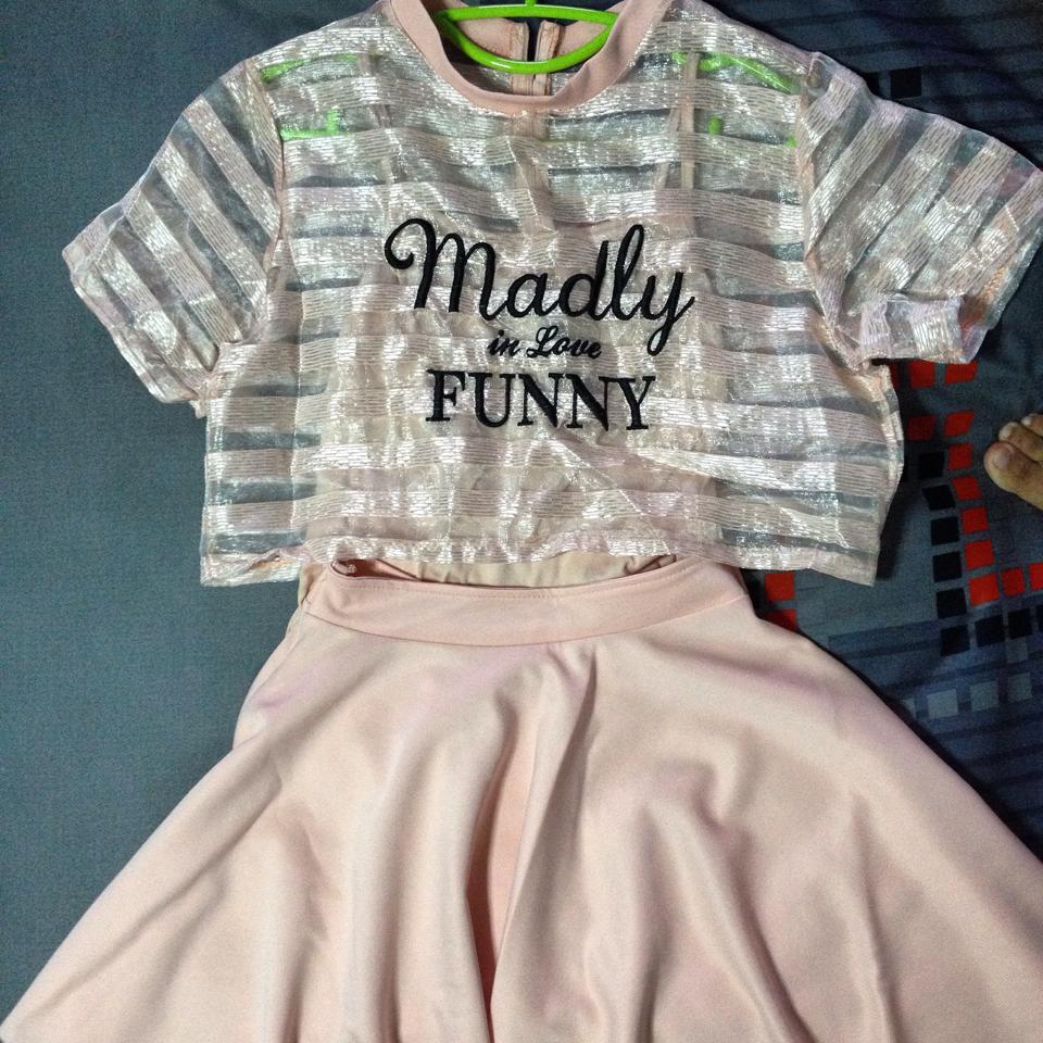 A1 Set เสื้อสั้น+กระโปรง สีชมพูโอรส ซื้อมาใส่สองครั้ง ชิคมากค่ะ