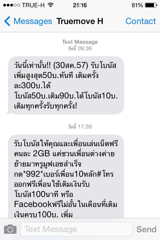 เราได้เมสเสซจาก true H ว่าเติมเงิน 300 บ ได้โบนัส 50 บาท