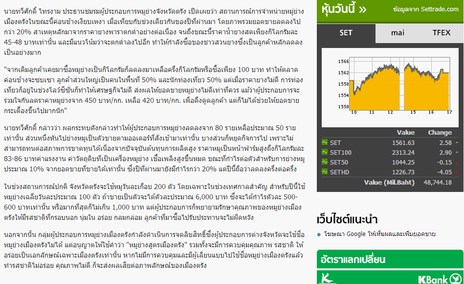 “หมูย่างตรัง” อ่วม ดัมพ์ราคา-เลิกกิจการ !!!