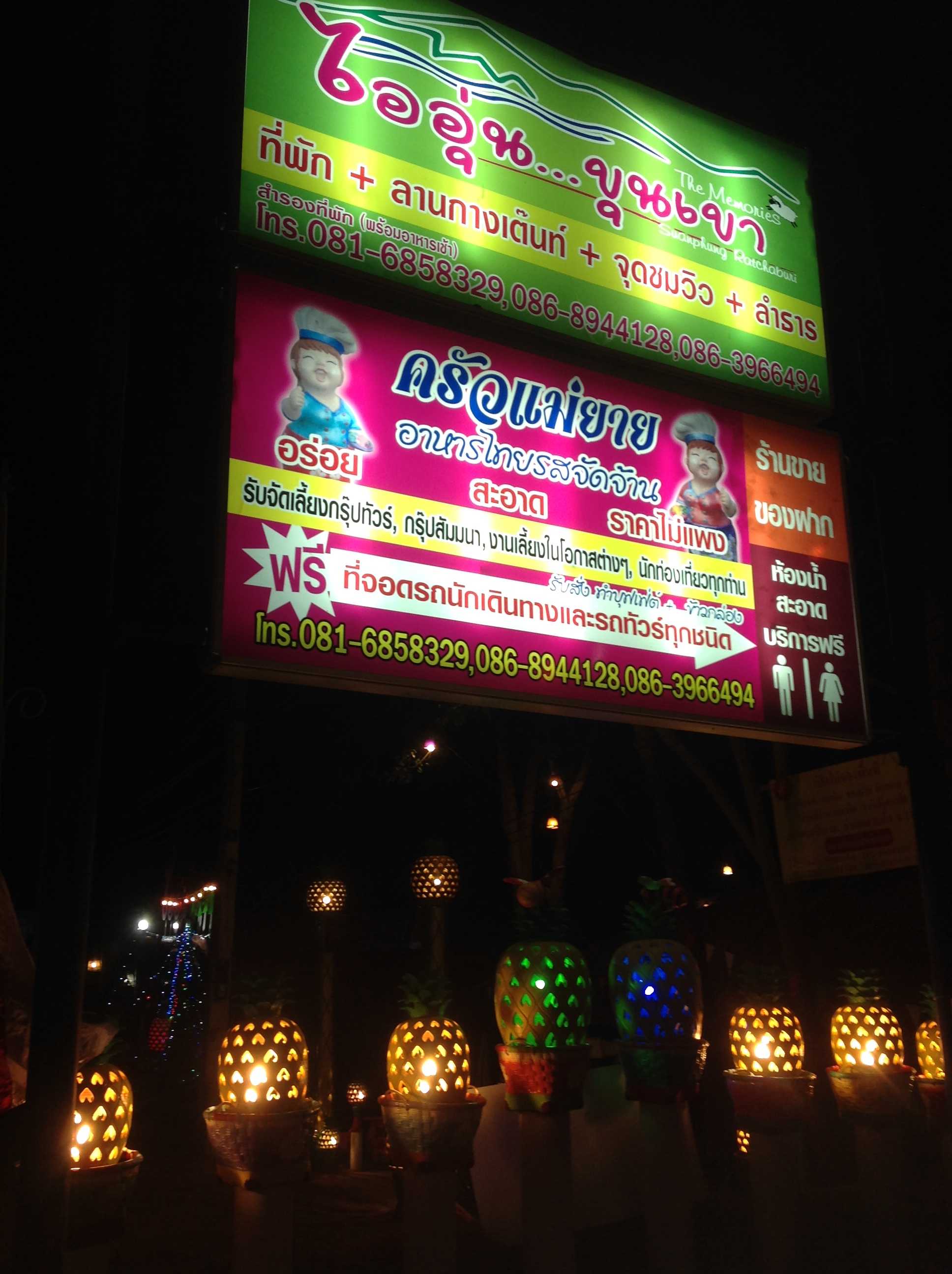 เป้าหมายต่อไป คือ ปาย กว่าจะถึงปาย ต้องจอดตลอดทาง เด็กๆเมารถ โค้งมากจริง แต่ผิวถนนดี ถึงปาย เกือบๆ 3 ทุ่ม หาที่พัก ไม่เจอ ฮ่าๆๆๆ สุดท้ายเจ้าของ ที่พัก หรือผู้ดูแลก็ไม่ทราบ ออกมารับที่หน้า อ. ปาย (พอดีคืนนั้น เป็นถนนคนเดิน ถนนที่เราจำได้เขาปิด คราวนี้ไปไม่ถูก) ถึงที่พักออกมาเก็บภาพ ปายยามค่ำคืน