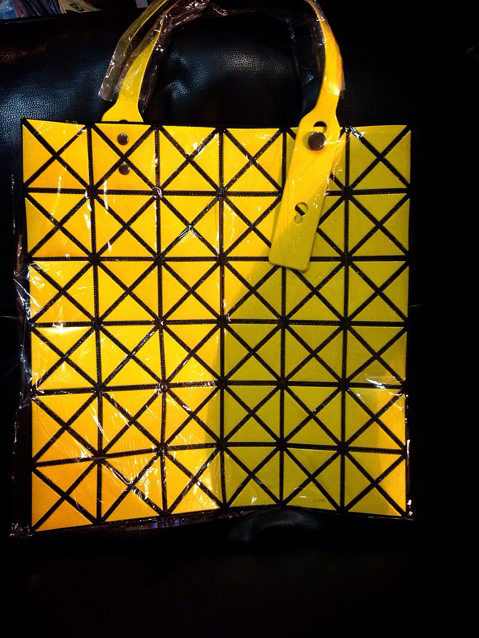 กระเป๋า BAOBAO ISSEY MIYAKE สีเหลือง ราคา 650 ส่งลทบ.ฟรีค่ะ..สวยเหมือนของแท้..กว้าง 33 cm ยาว 33 cm สายยาว 18.5 cm ปรับได้ 2 ระดับค่ะ
