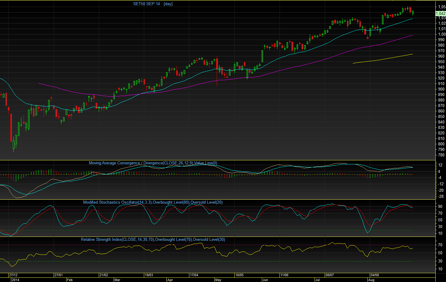 ให้ระวังแรงเทขายทำกำไรที่อาจจะเกิดขึ้นได้ทุกเมื่อ เพราะ Indicator หลายตัวอยู่ในสภาวะ Over Bought มาหลายวันแล้ว