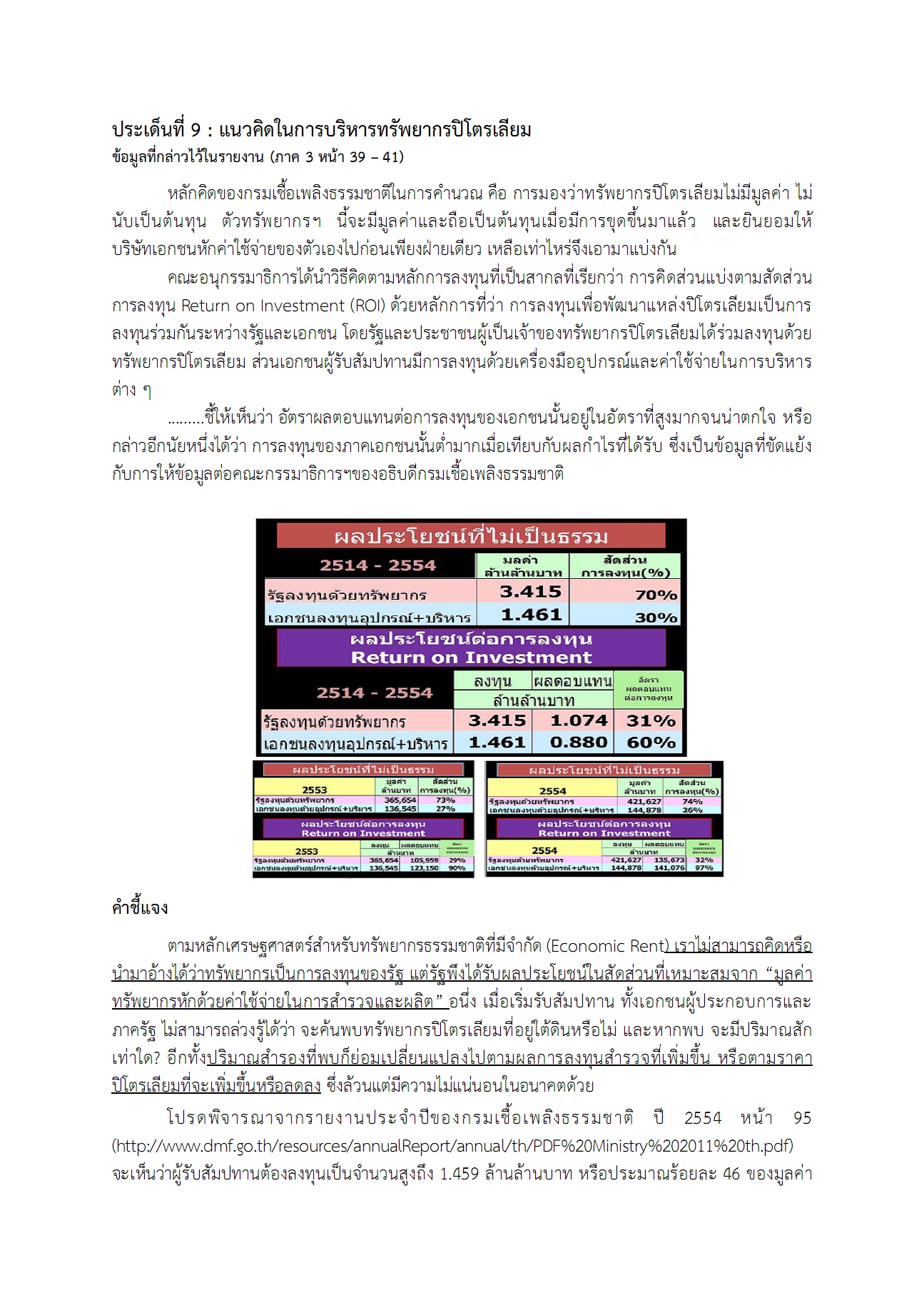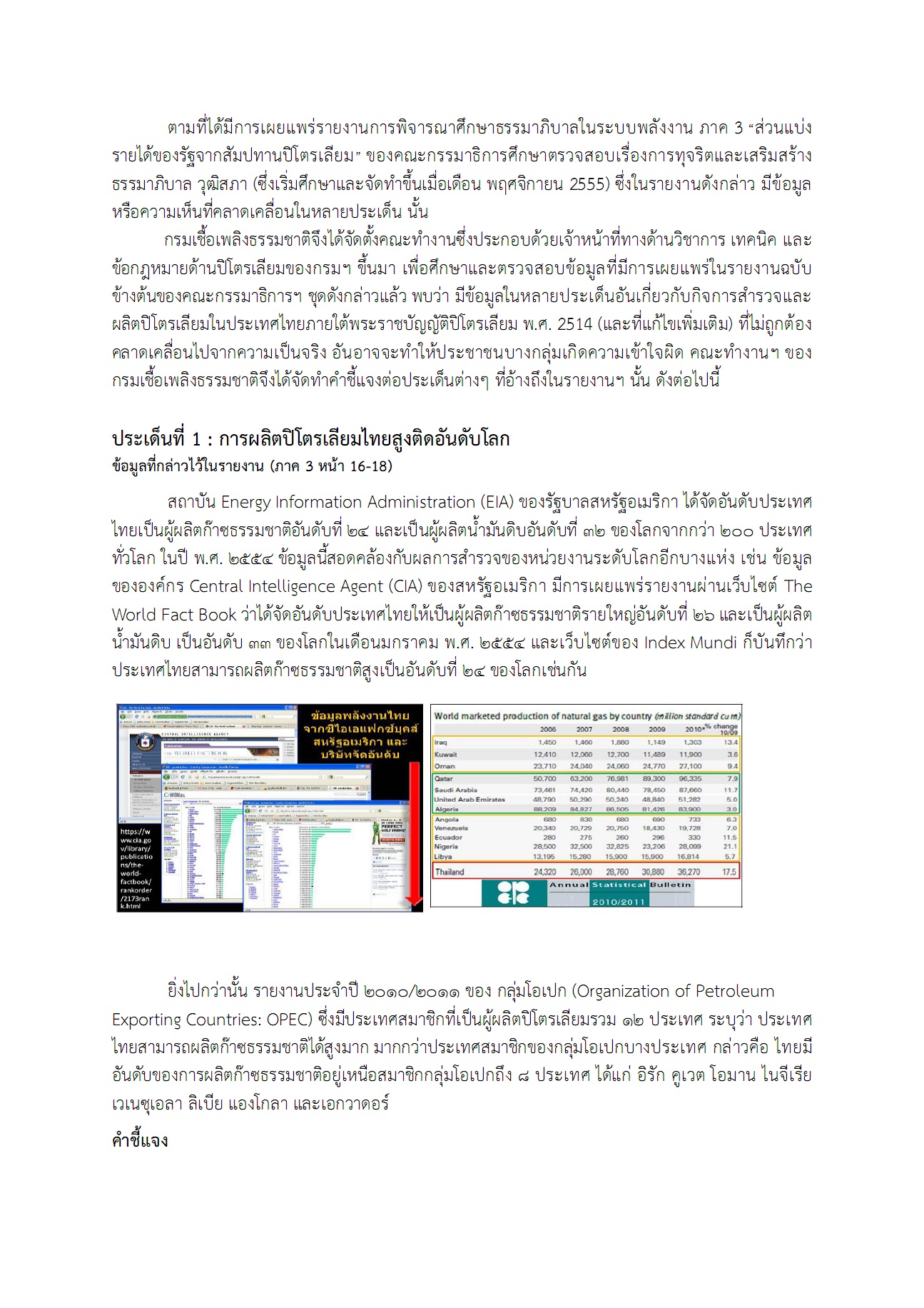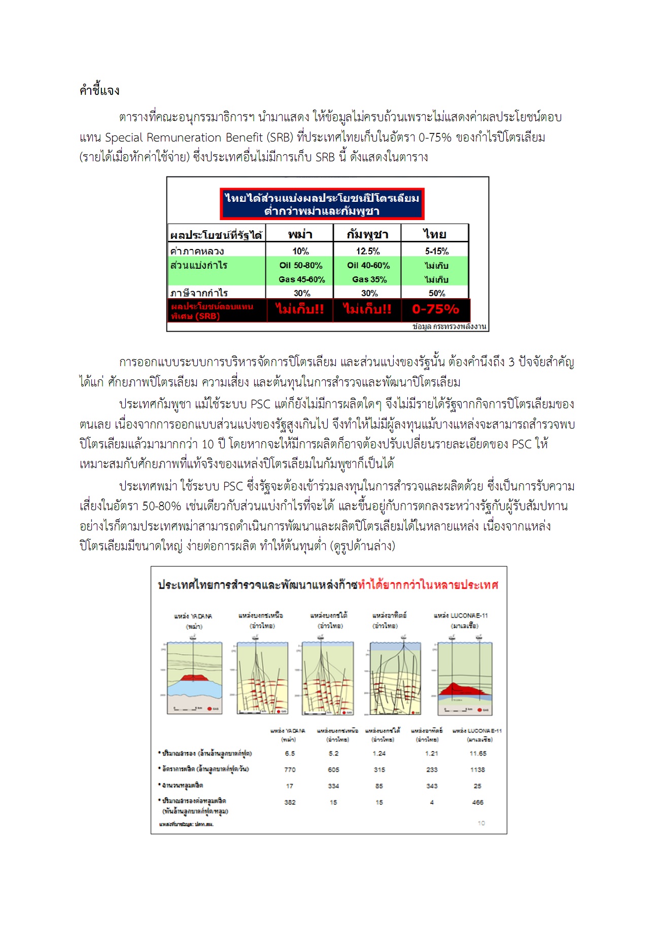 คําอธิบายและชี้แจงของกรมเชื้อเพลิงธรรมชาติต่อคณะกรรมาธิการศึกษา ตรวจสอบเรื่องการทุจริตและเสริมสร้างธรรมาภิบาล วุฒิสภา
