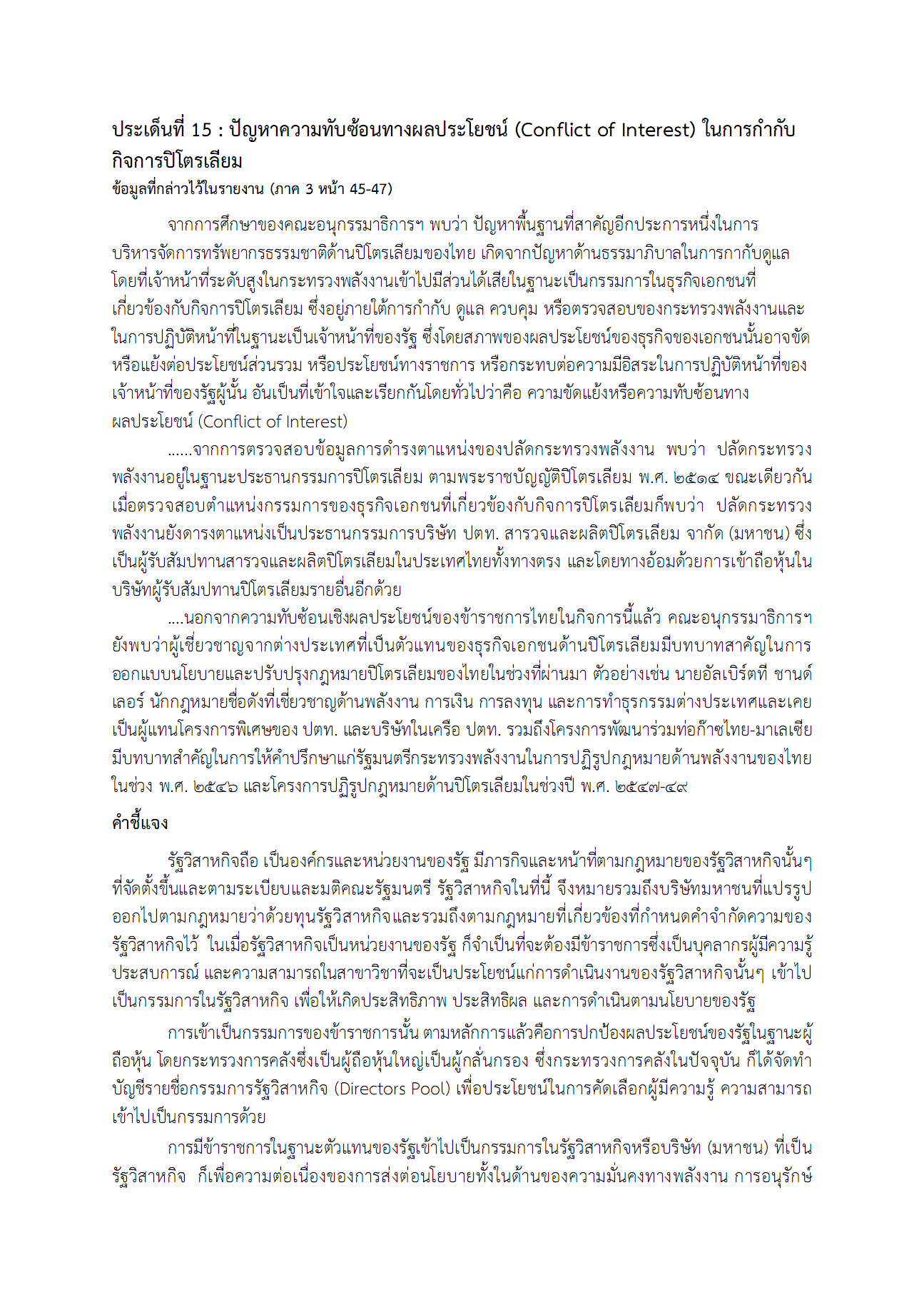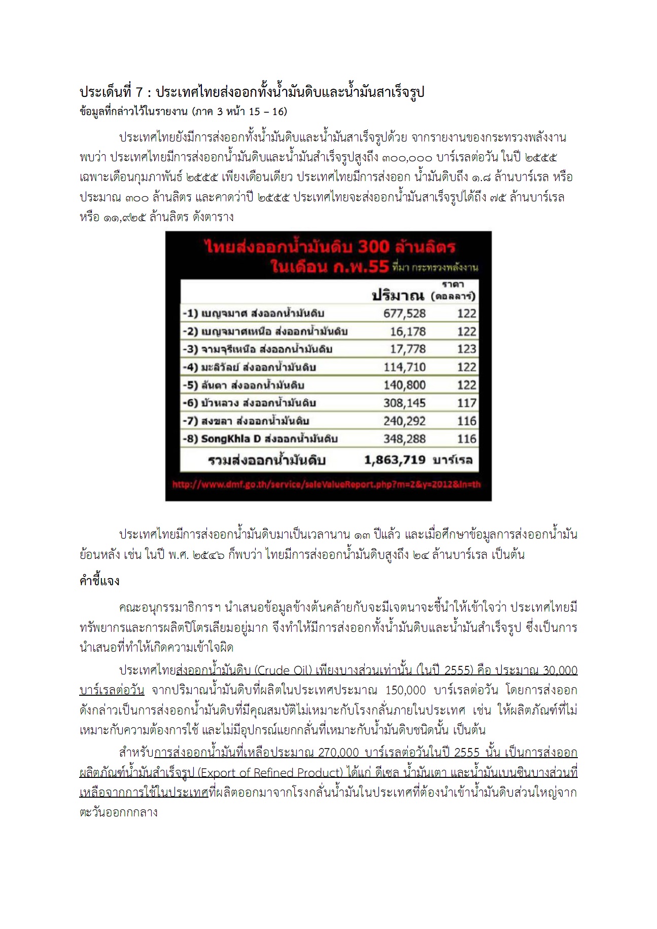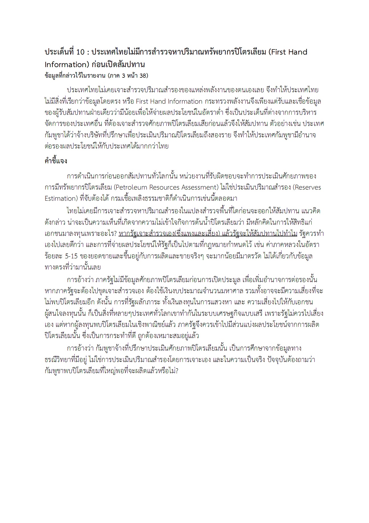 คําอธิบายและชี้แจงของกรมเชื้อเพลิงธรรมชาติต่อคณะกรรมาธิการศึกษา ตรวจสอบเรื่องการทุจริตและเสริมสร้างธรรมาภิบาล วุฒิสภา