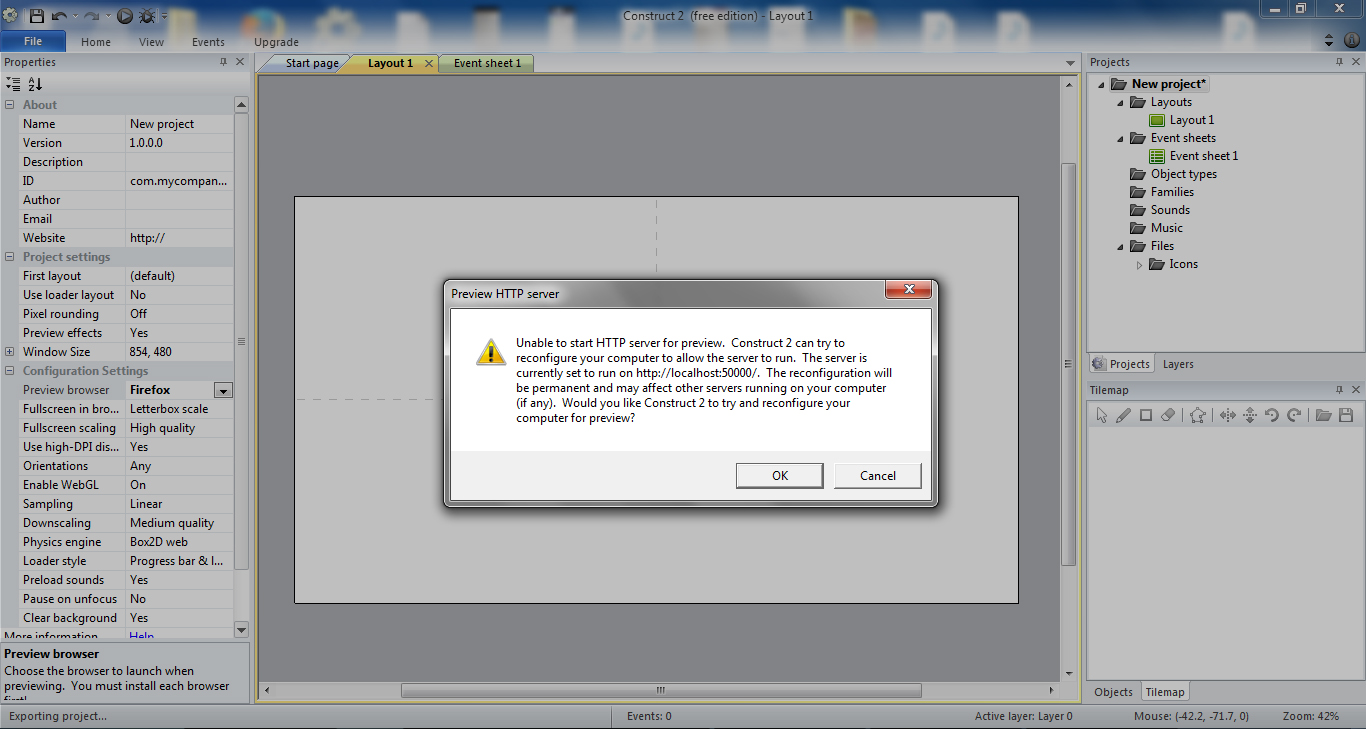 โปรแกรม Construct 2 กด preview แล้วขึ้นแบบนี้ครับ