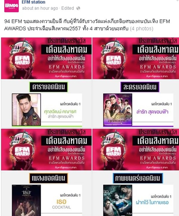 EFM AWARDS เดือนส.ค. ยินดีกับเวียร์และล่ารักสุดขอบฟ้า