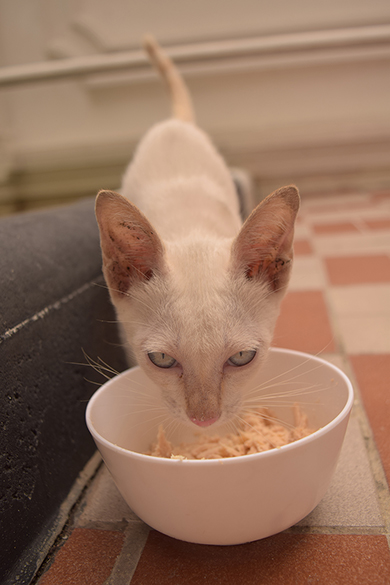 พอกลับมาบ้านลูกแมวก็เดินตามมาเข้าบ้าน บ้านเราขายอาหาร ป้าเราไม่ชอบ พอเห็นปุ๊ปก็จับมันจะโยนข้ามกำแพงไปฝั่งที่จอดรถ