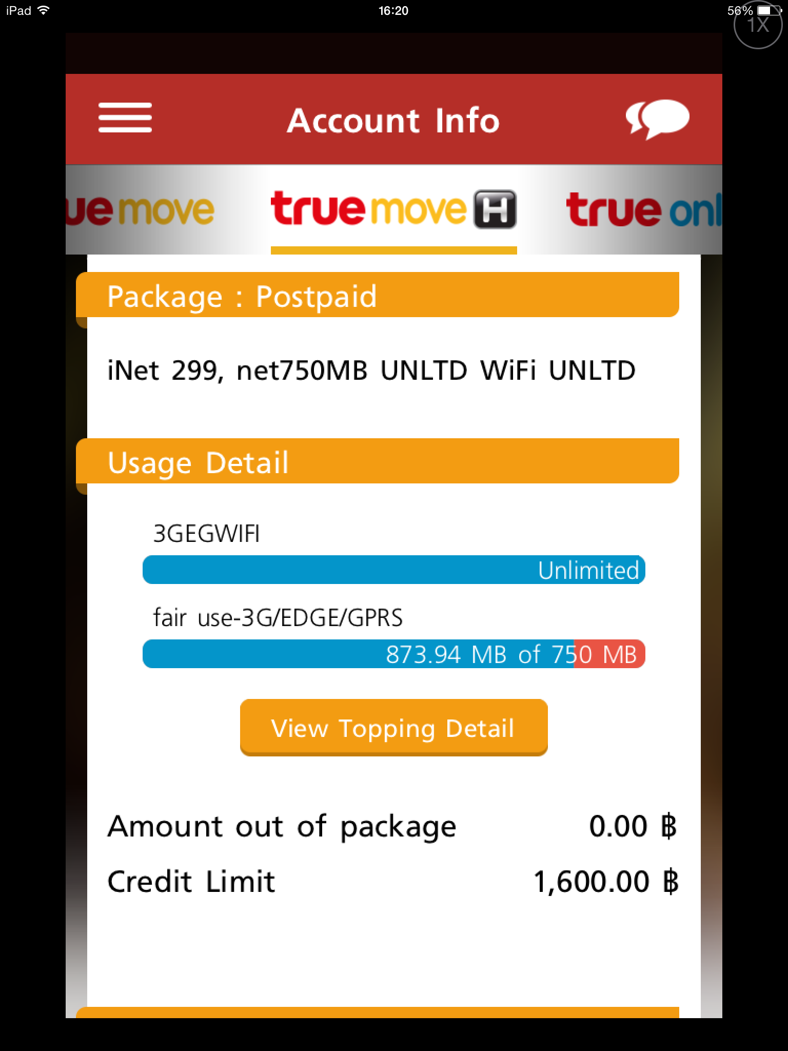 ผมใช้ TRUE MOVE H package iNet 299 เครื่อง iPad mini with retina display ครับ
