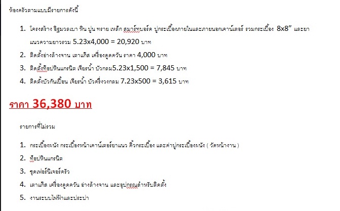 รบกวนช่วยดูใบเสนอราคาให้หน่อยครับว่าราคาที่ช่างเสนอมาแพงไปหรือเปล่าครับ พอดีกำลังหาช่างทำครัวปูนอยู่ครับ ผมอยู่แถวลำลูกกาคลอง 4 ครับ ขอบคุณครับ