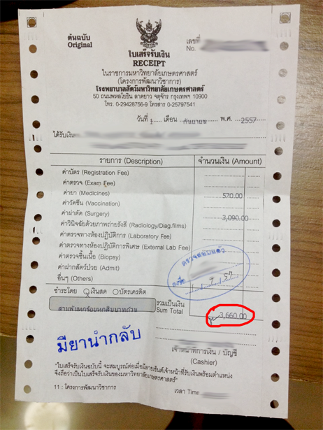 อีกเรื่องนึงอยากสอบถาม เพราะดิฉันไม่เคยพาแมวไปทำหมัน ที่พาไปทำครั้งนี้มีค่าใช้จ่าย 3,660 บาท