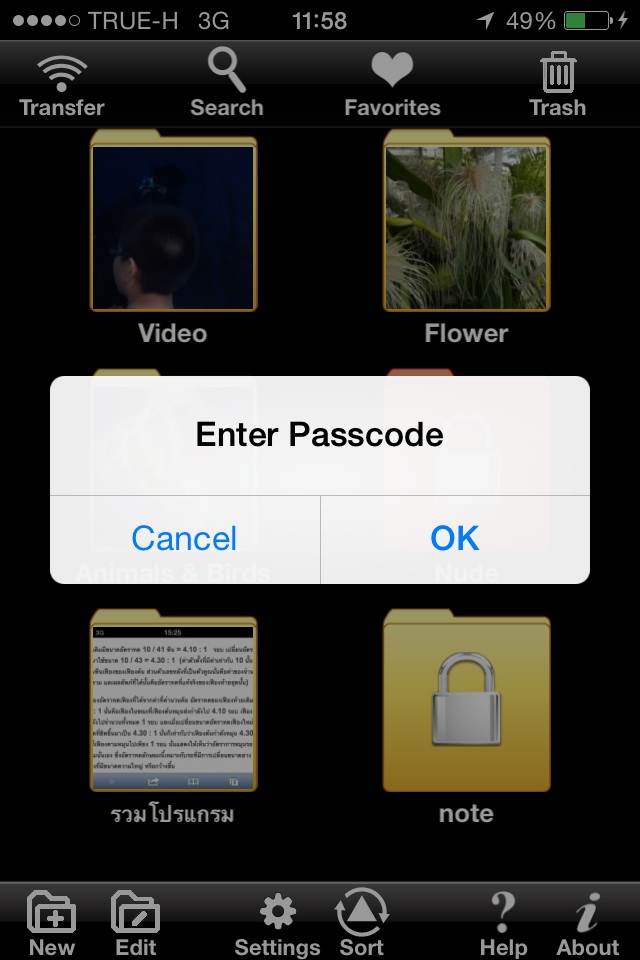 ตามรูปครับไม่มีคีย์ให้ใส่รหัส พอกดok มันขึ้นรหัสไม่ถูกต้อง ผมใส่รหัสแต่ละโฟลเดอร์ ก่อนหน้าไม่เป็นหลังจากผมupgrade software คือผมใช้ไอโฟน4 พึ่งจะ up เพื่อนๆพอมีวิธีแก้ไขมั้ยครับ เสียดายรูปที่เก็บสะสมมา ฃอบคุณครับ ครับ