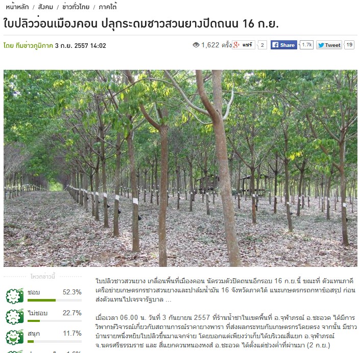 ใบปลิวว่อนเมืองคอน ปลุกระดมชาวสวนยางปิดถนน 16 ก.ย. !!!