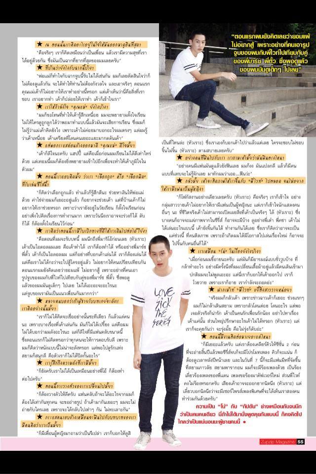 สิ่งที่ได้จาก กต: ดูในซี่รี่ที่ตัวเองเล่นคิดว่า "เออ.น่ารักดี" เป็นคนเปิดกว้าง(เรื่องเพศ)เลยรับบทนี้ได้ อ๊ายยยจิ้นค่าาา>< อย่างฟคถ้าได้อะไรจากผมต้องเท่ากันทุกคน มาขอถ่ายรูปถ้าคนเยอะจะไม่ให้ใครเลย จะได้ไม่ต้องทะเลาะกัน แหมมมเป็นคนน่ารักขนาดนี้แฟนคลับรักตายเล๊ยยย