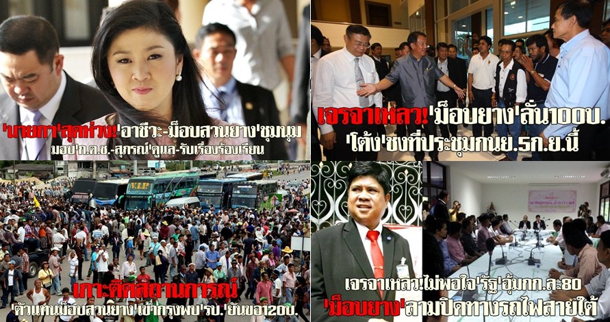 แต่นี่ เขารู้กันทั้งบ้านทั้งเมืองว่า ที่ออกมานั้น ออกมาช่วยพรรคการเมืองของตัวเอง พูดง่ายๆ คือต้องการมาล้มรัฐบาลยิ่งลักษณ์อย่างเดียว จึงไม่สนใจ ไม่นำพา แม้ว่ารัฐบาลจะช่วยราคายางให้ได้ 80 บาทพร้อมเงินสนับสนุนอีก 2500 บาท/ไร่ ก็ไม่เอา พูดแต่อย่างเดียวว่าจะเอา 100 บาทเท่านั้น ทั้งๆที่รู้ว่าเป็นไปไม่ได้..หึหึหึ