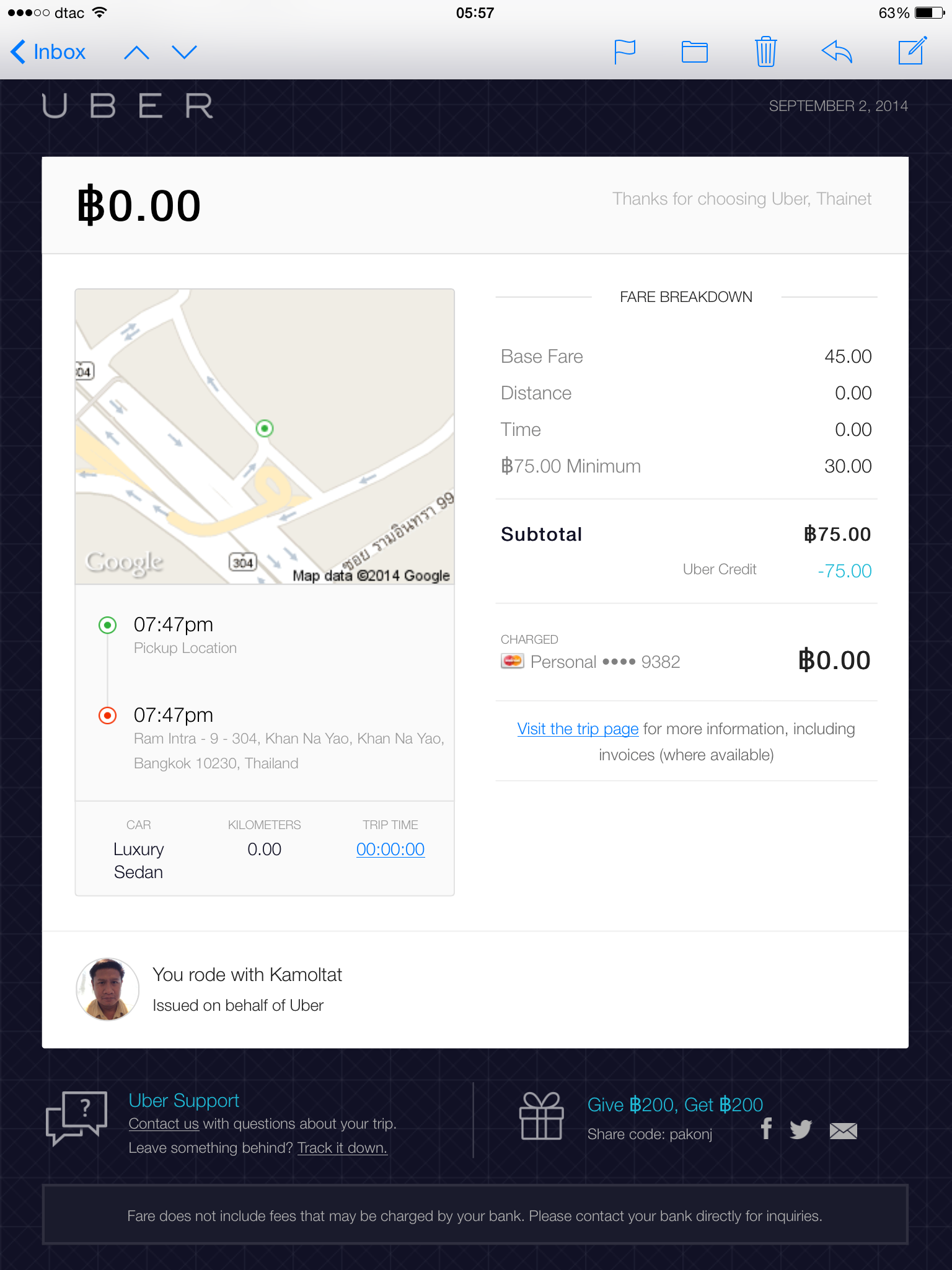 สรุปคือ รวมแล้วค่าบริการวันนั้น 1020 บาท ซึ่งผมว่ามันแพงผิดปดติไปหน่อย เพราะไม่ใช่ว่า ผมไม่เคยนั่ง Uber เลย