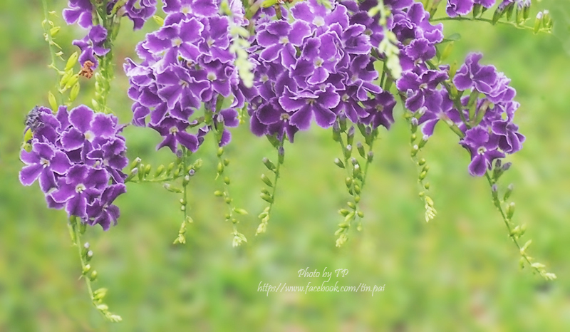 เทียนหยดญี่ปุ่น สีม่วงเข้ม ออกดอกเป็นพวงๆ เวลาโดนลม แกว่งไปมา น่ามอง