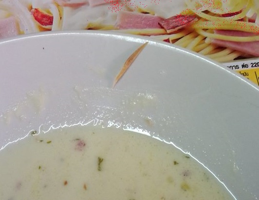 สปาเก็ตตี้คาโบนาร่า แถม กระดูกแหลม ไว้จิ้มฟัน (ข้อควรระวัง เพื่อความปลอดภัยของสุขภาพ ห้ามกิน!! ควรหาให้เจอก่อน)